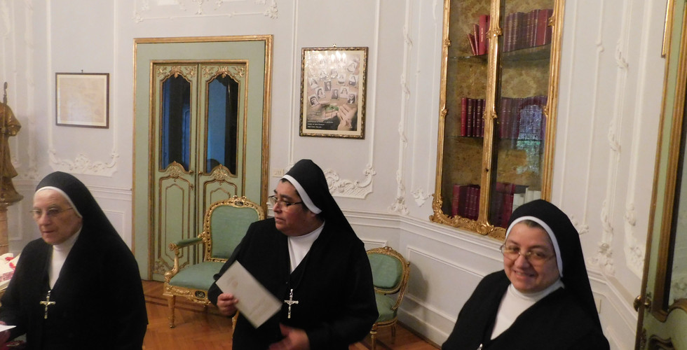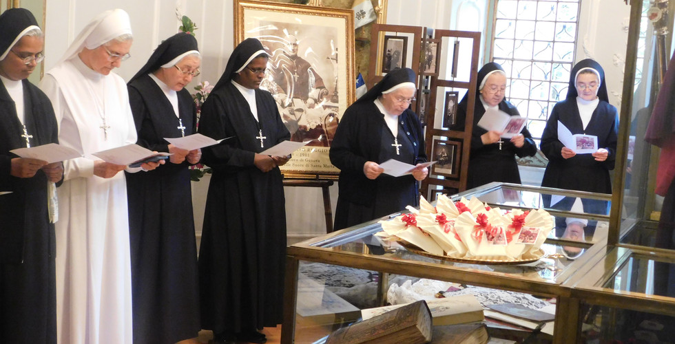 Alla fine della mattinata le nostre Consorelle-Delegate si sono radunate nella Sala delle “Reliquie del Padre Fondatore” per pregare insieme, affidando al Beato Tommaso Reggio il buon esito dei lavori capitolari. Lui che ha voluto questo nostra Famiglia Religiosa, donandole il carisma dell’accoglienza e del servizio gioioso perché fosse testimonianza dell’amore del Signore tra la gente, intercederà perché ognuna di noi accolga con gioia quanto è stato pensato e proposto per la crescita di ogni Suora di Santa Marta.